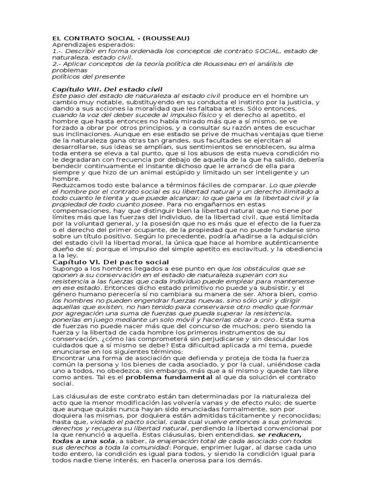 En día, por lo que este libro el contrato social rousseau pdf es muy interesante y vale la pena leerlo. We are a sharing community. • la dinámica de los derechos en el pensamiento moderno. Nevertheless, this right does not come from nature, and must therefore be. Es el figurativo pacto o contrato social celebrado entre todos los miembros de la comunidad, el que limita la acción individual libre y natural a cambio de una convivencia social.